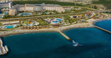 3️⃣ Широкий пляж з комфортним піщаним входом в море. Водні розваги: аквапарк, 7 гірок з підігрівом для дітей, 2 басейни з підігрівом.